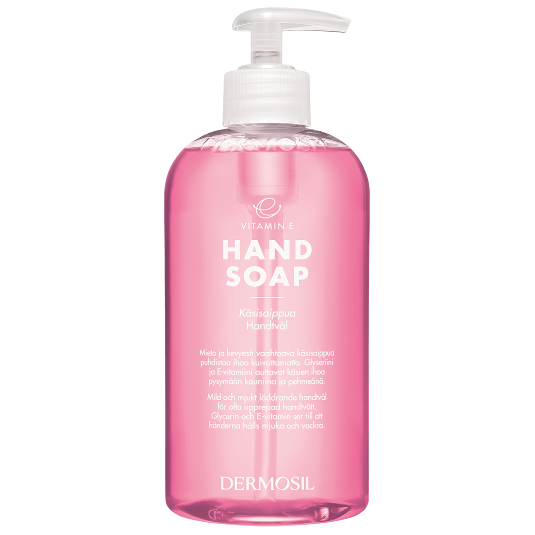 Marvellously reddish pink Hand Soap Vitamin E is a long lasting soap for frequent hand washing. The soap contains moisturising vitamin E and it has the soft and fresh fragrance of the E line.
