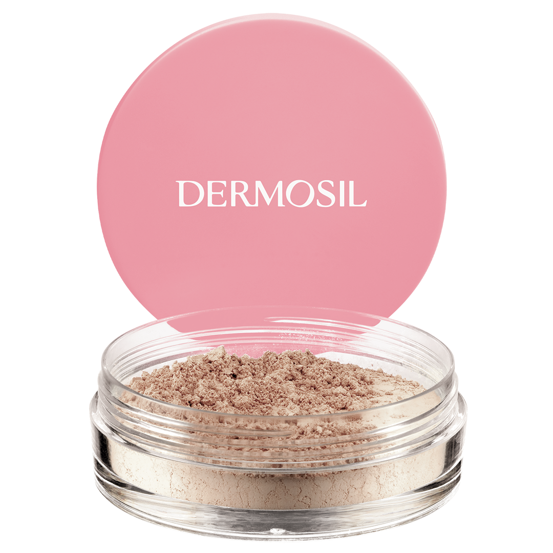 Dermosil Mineral Powder creates a nice even skin surface and complexion. Apply Mineral Powder on top of your normal facial cream to get the most natural result. Add a second or even third layer of powder if you wish for more coverage. Apply Mineral Powder on top of foundation to get the most covering result.