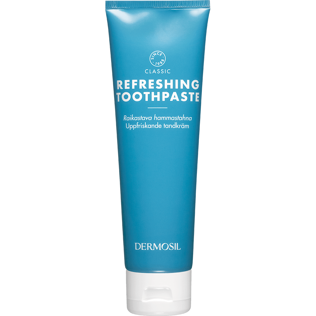 Minty-flavoured toothpaste leaves a fresh sensation and it helps to prevent discolourations and dark stains on teeth. Refreshing Toothpaste is mild and sulphate-free. The product contains nourishing oat oil. The toothpaste also contains fluoride that helps to prevent cavities.