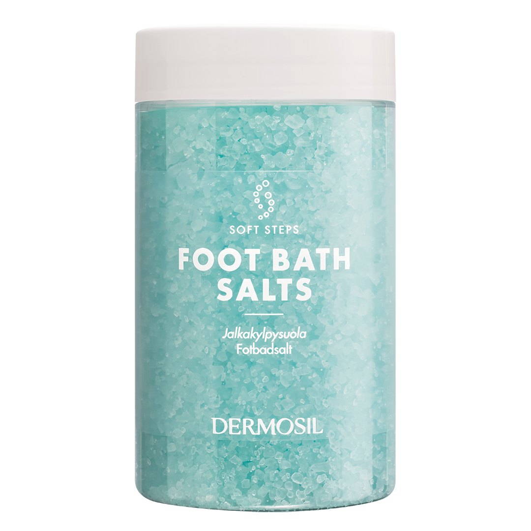 Dermosil Foot bath salts makes a foot bath into a refreshing and relaxing moment of rest. Foot bath salts contain camphor that stimulates circulation and reduces swelling. Menthol is cooling and it brings relief to aching feet. Eucalyptus refreshes and it has also an antiseptic effect.