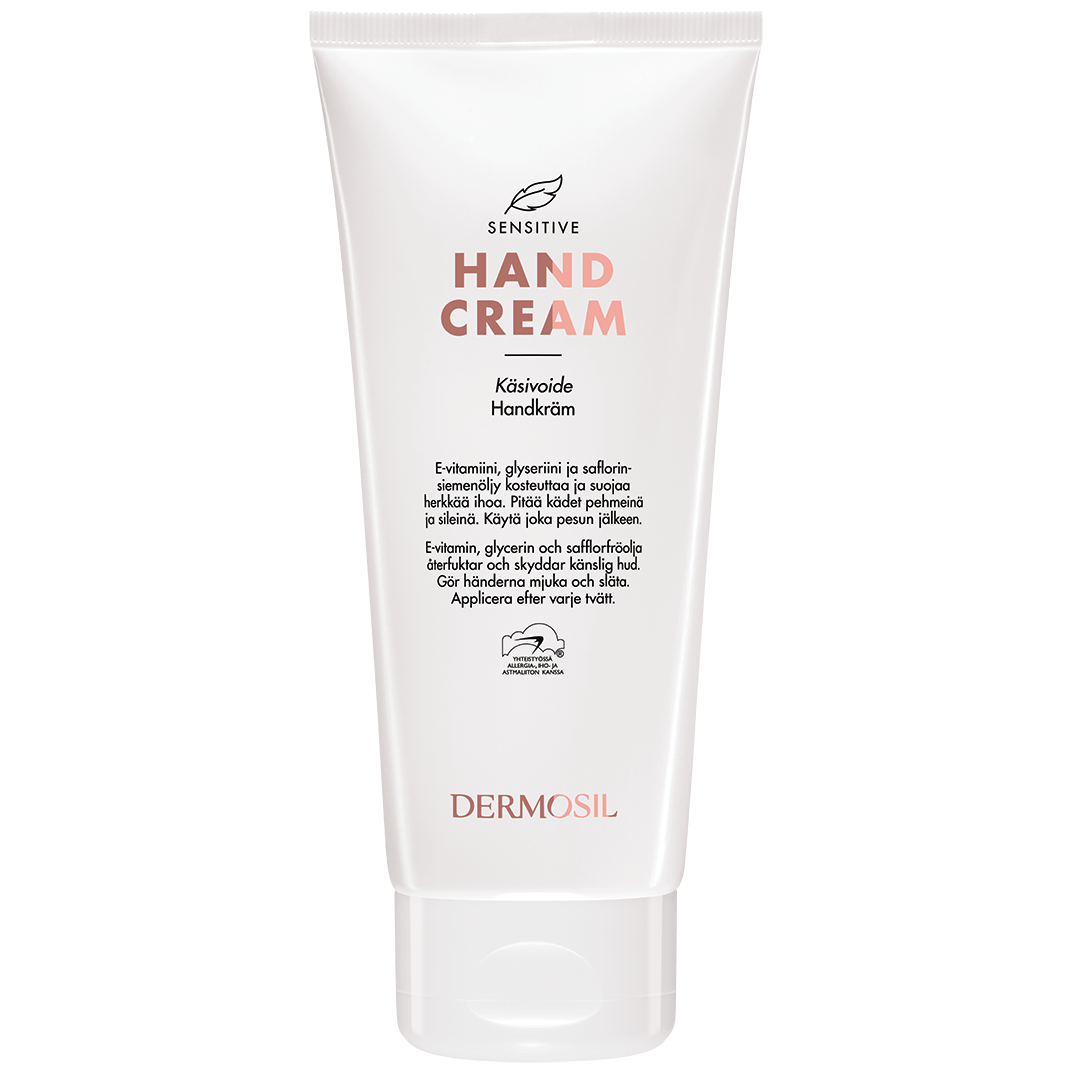 Sensitive Hand Cream is a conditioning and quickly absorbed cream for dry hands. The product protects the skin while moisturising it. The moisturising ingredients include glycerine and thistle oil. The cream also contains vitamin E that has moisturising effects as it improves moisture retention in skin.