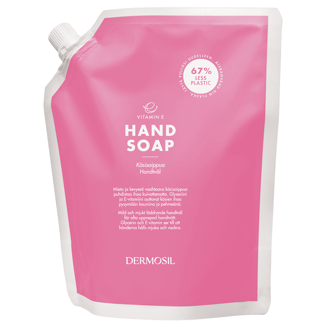34111Fresh rosy red hand soap for frequent hand washing. Contains vitamin E and glycerin to moisturise skin. The soap has the soft and fresh Hypoparfum® fragrance of the Vitamin E line. Economic.