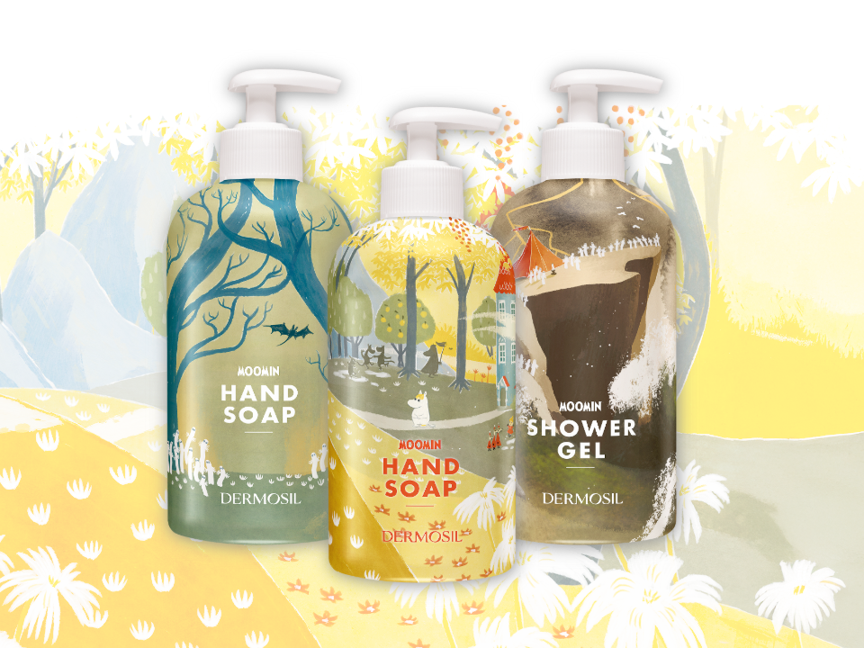 Moomin Hand Soap cleanses hands gently, while providing skin care and protecting skin. Hand Soap contains birch sap and betaine for skin care. Pine extract with antioxidant properties has also been used in the contents of the soap.