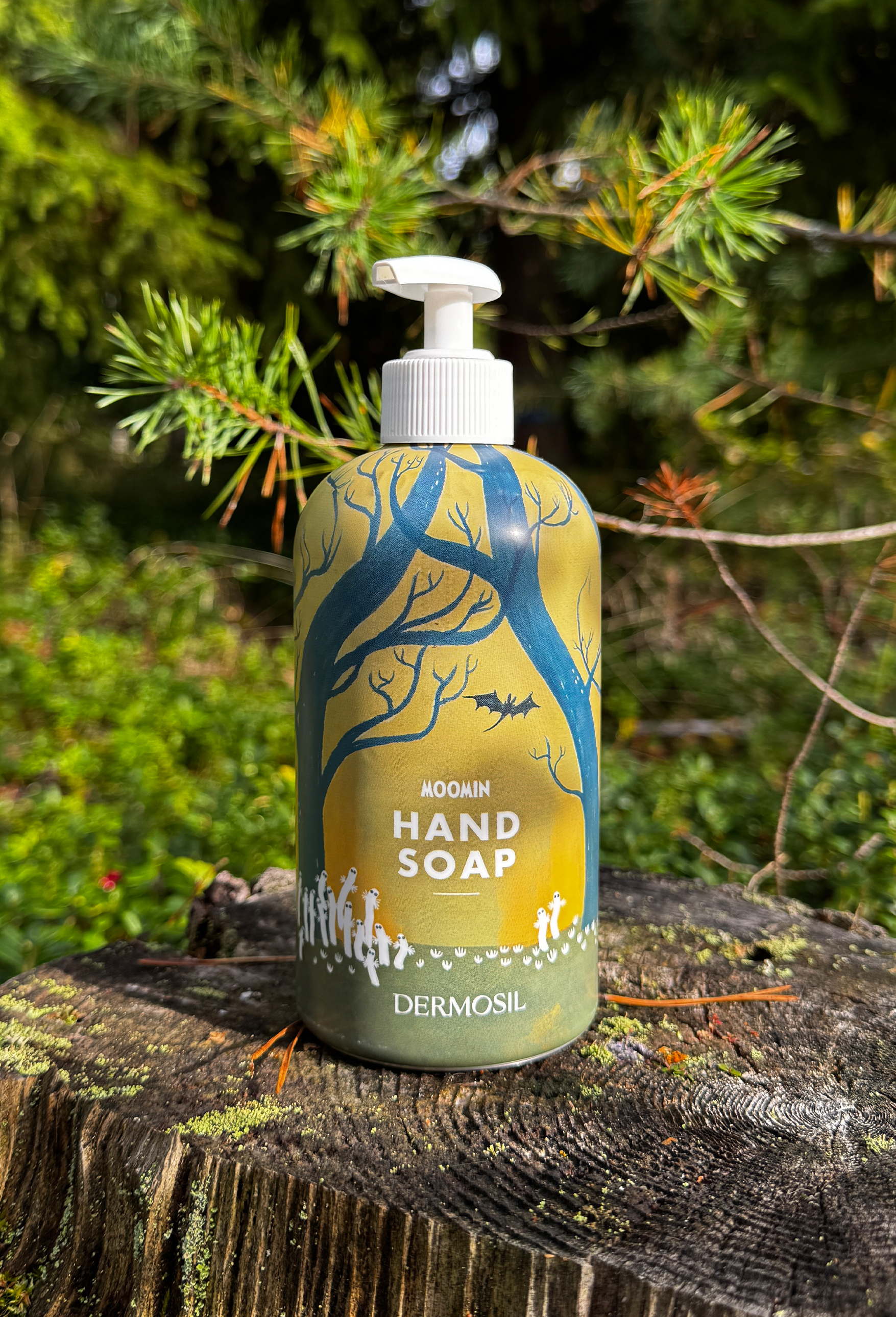 The hand soap leaves a wonderful feeling on skin, and it has an illustration of Hattifatteners – the mysterious travellers familiar from Moomin stories.
