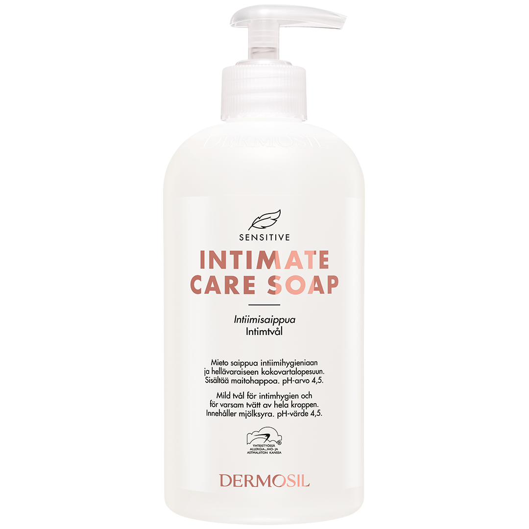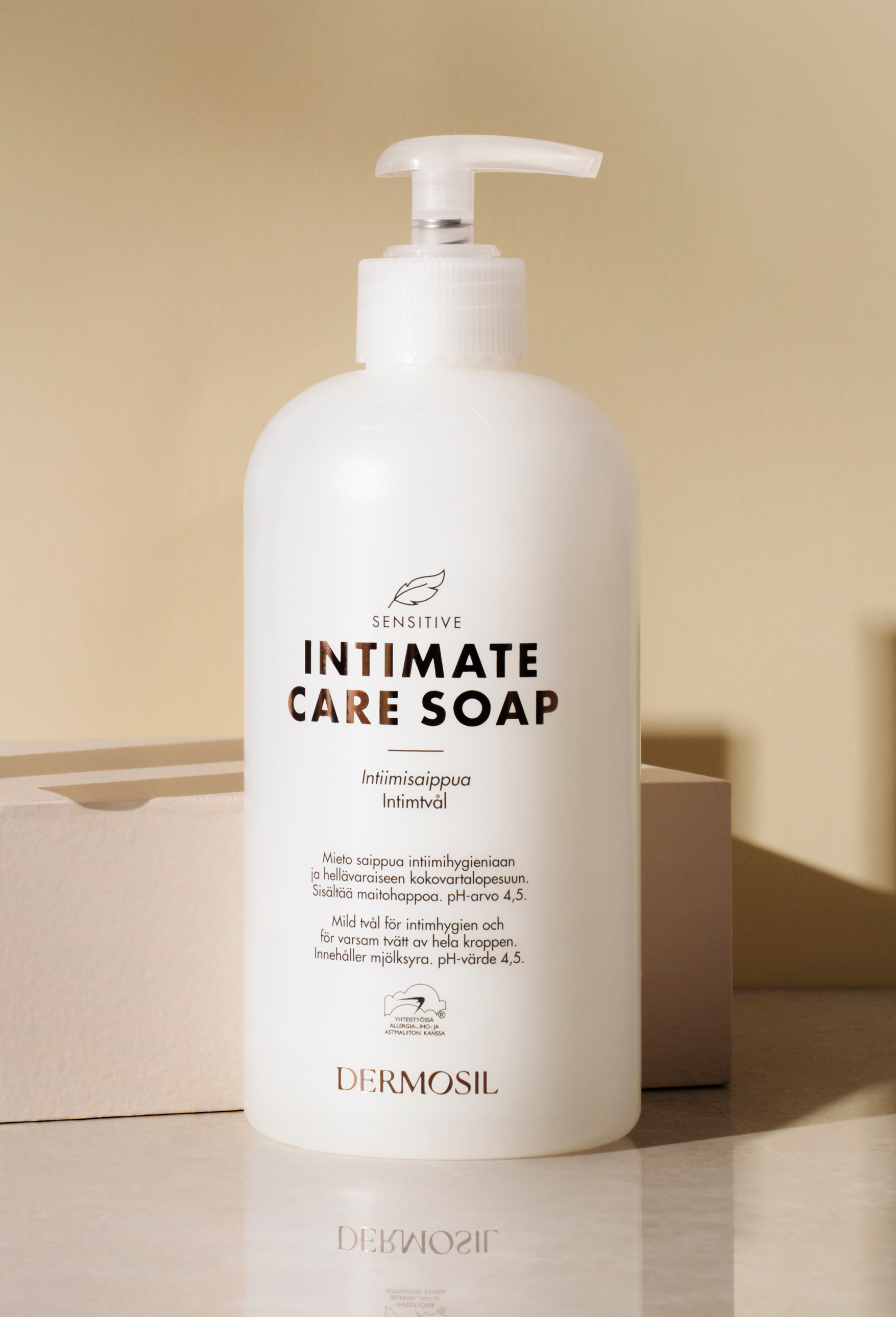 Standard cleansing products are not recommended for washing body areas with very sensitive and thin skin. Therefore it is prudent to use specially formulated soap or just plain water for intimate washing. The safe Dermosil Intimate Care Soap with a 4.5 pH contains lactic acid. The soap is particularly suited for intimate washing due to its low pH level. It lathers lightly and is pleasant to use. The product has a moisturizing effect.