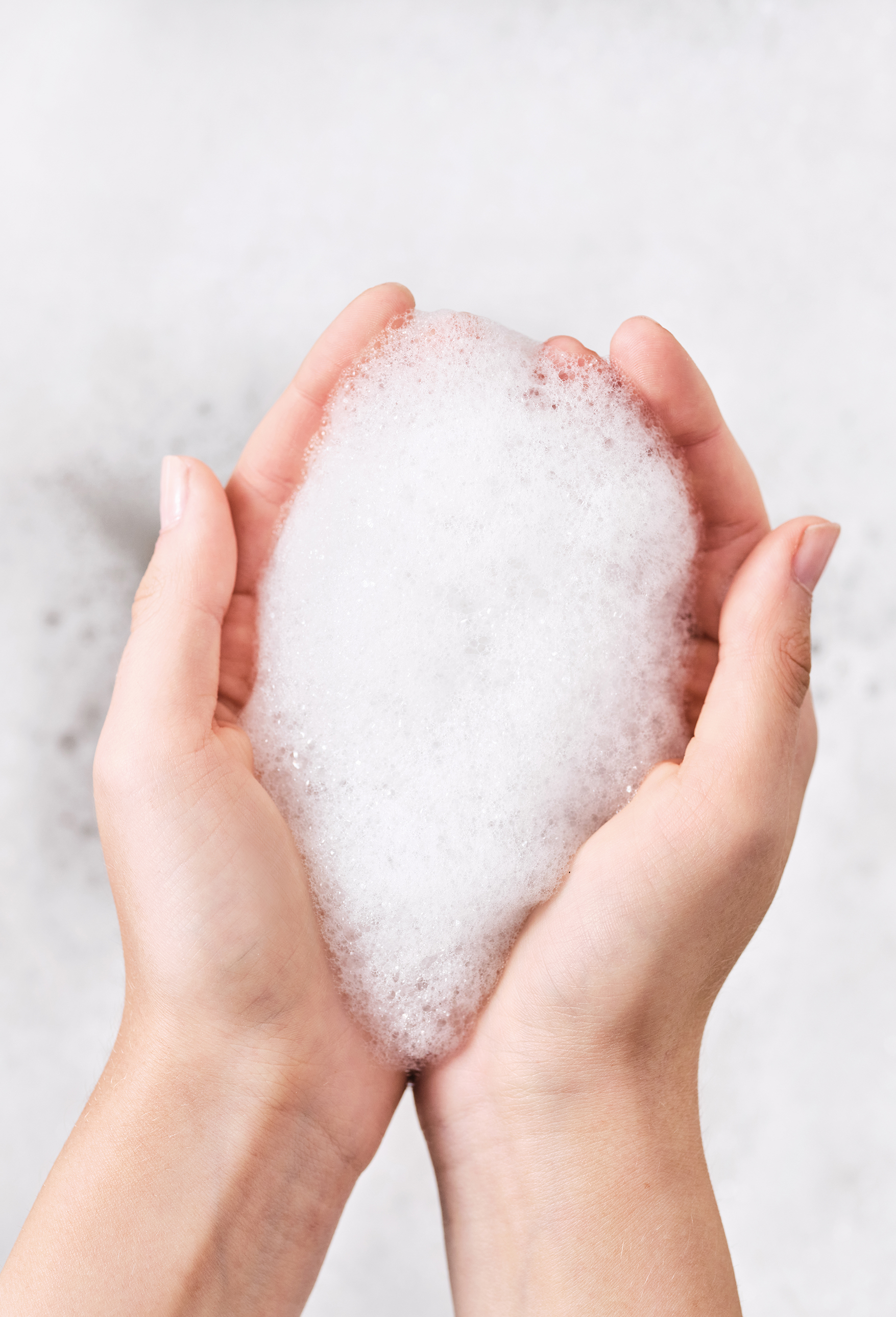 The Mild Care Soap has a liquid consistency for washing delicate skin.