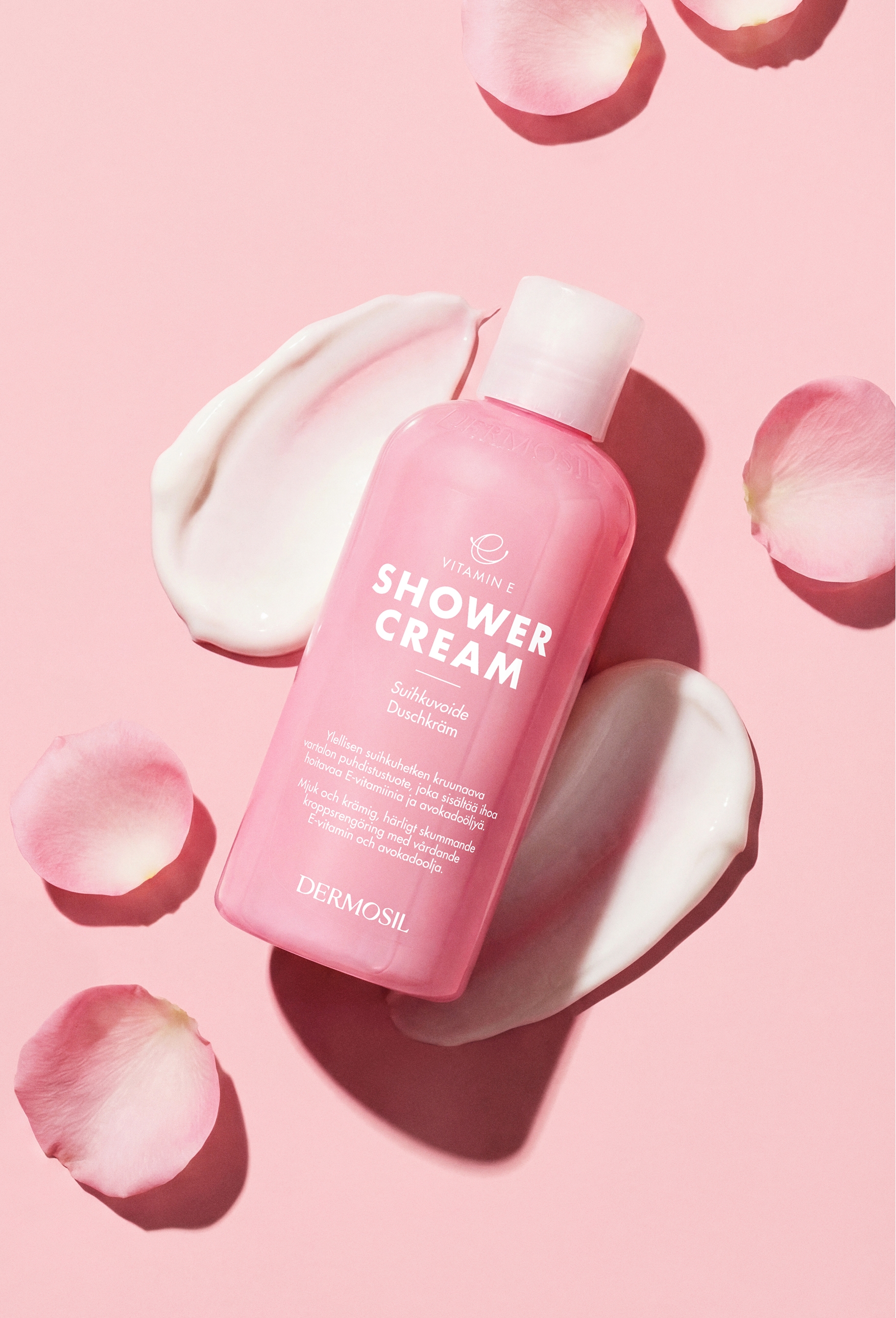 Vitamin E Shower Cream with its creamy soft foam feels luxuriously caressing on skin. The product has been supplemented with vitamin E and silk proteins to bind moisture to the skin.
