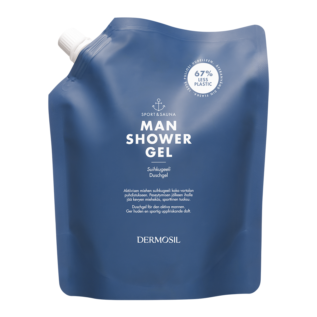 Sport & Sauna Shower Gel refill and bottle have the same economic size of 500 ml. Use one refill to conveniently fill one empty bottle.
