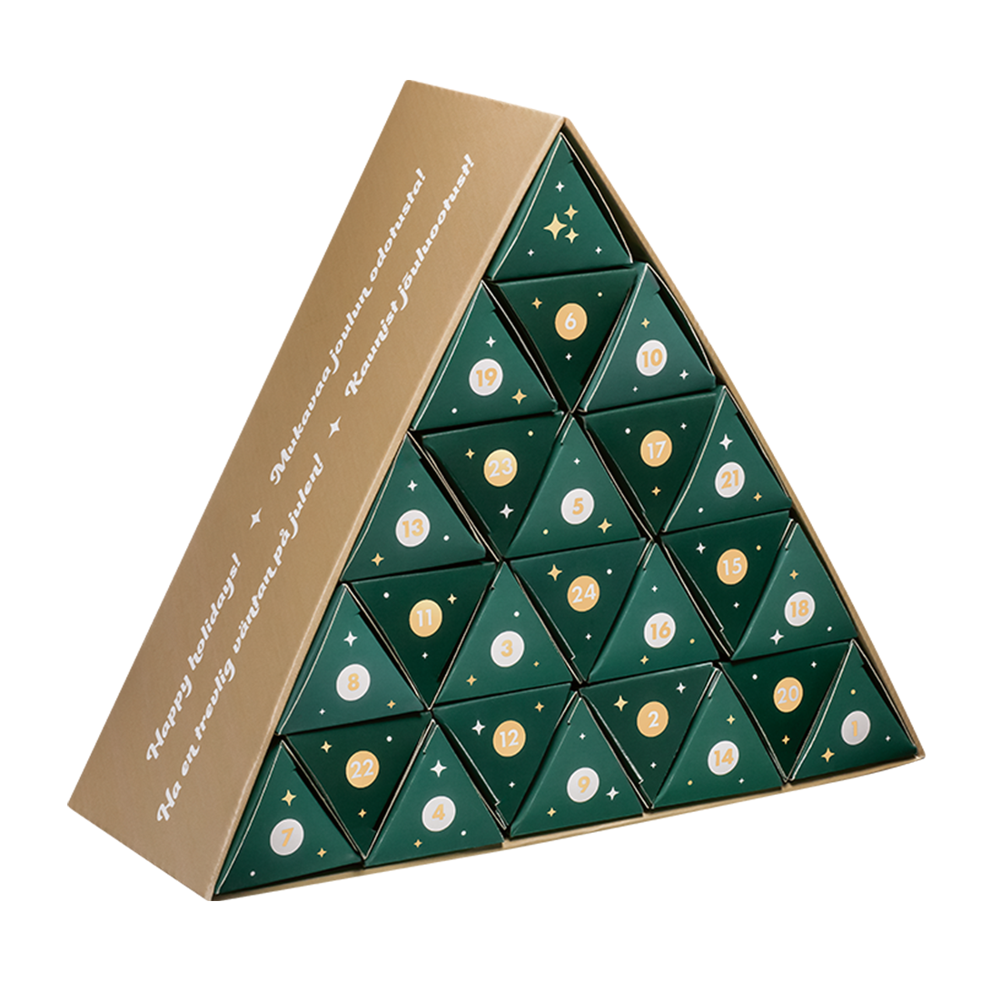 The Christmas calendar of cosmetic products has been developed to include even more varied and awesome products than in the previous years. Behind the calendar windows you can find both some highly popular products of our product range and also exciting new products. The calendar includes skin care and beauty products as well as some products for the home. In addition, the calendar has a 25th window with a thrilling surprise waiting for you!