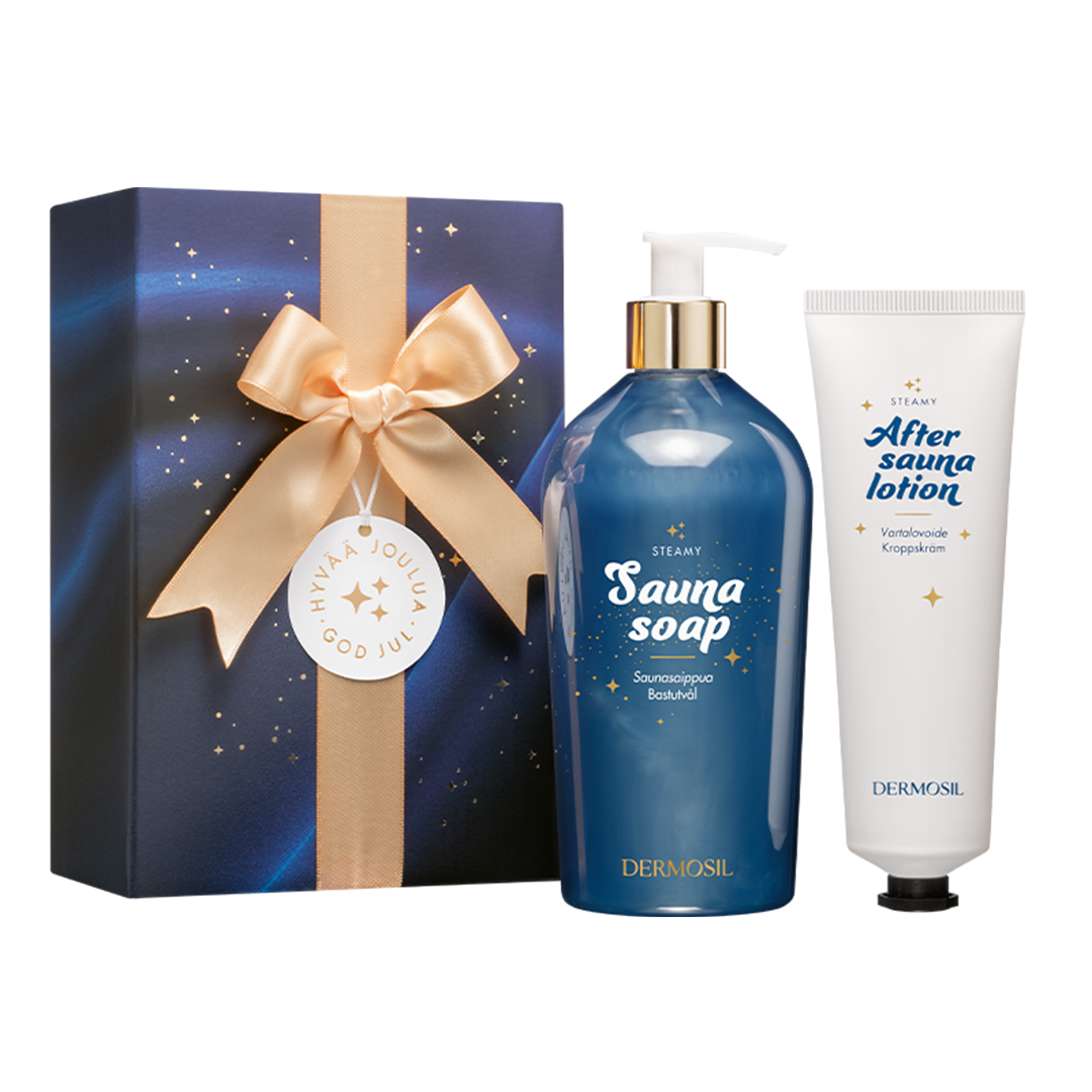 Christmas gift Steamy includes a refreshing Steamy Sauna Soap and skin soothing Steamy After Sauna Lotion. Both products have been developed specifically for after sauna skin care.