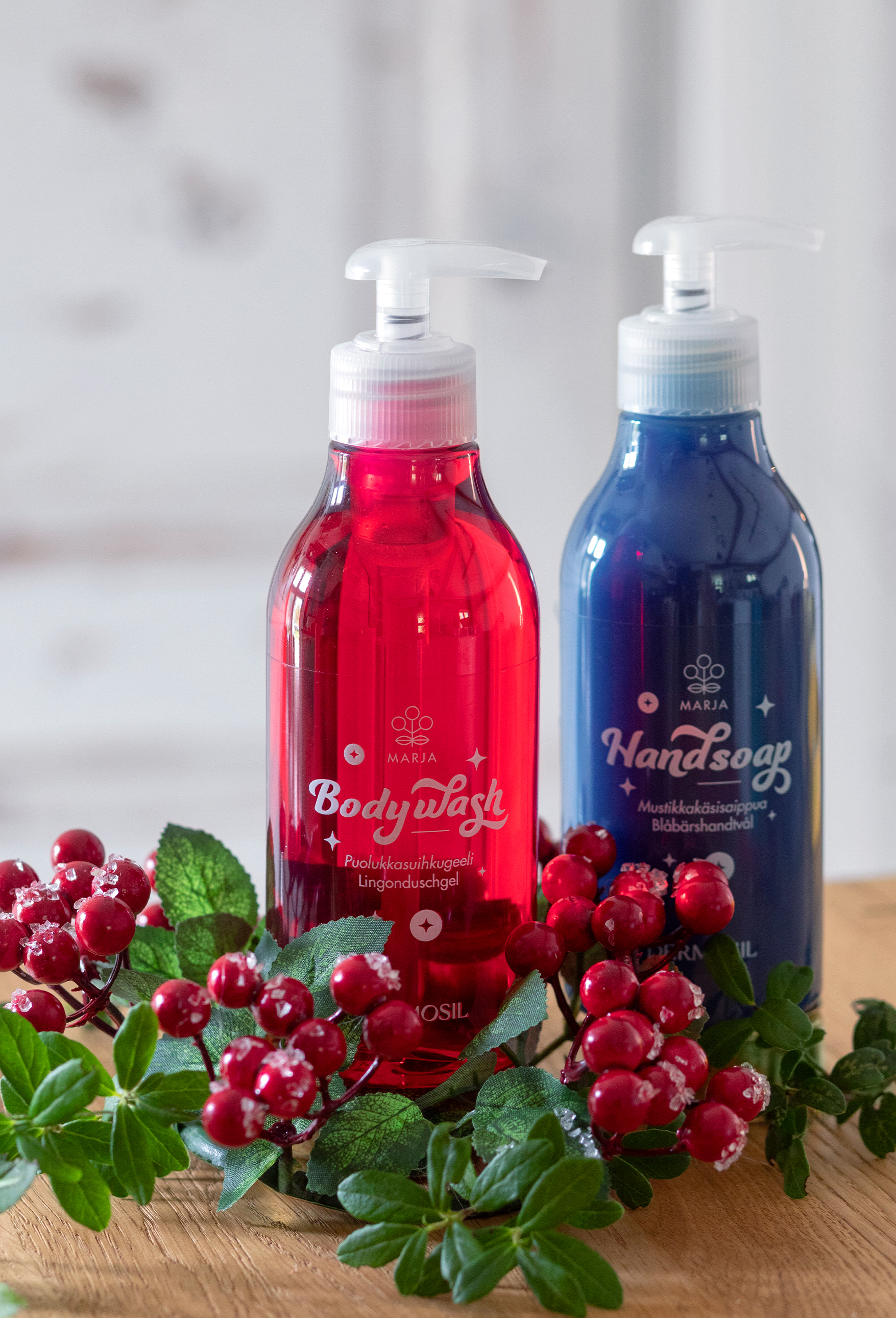 Treasured wild berries for the skin: Lingonberry Body Wash and Blueberry Hand Soap