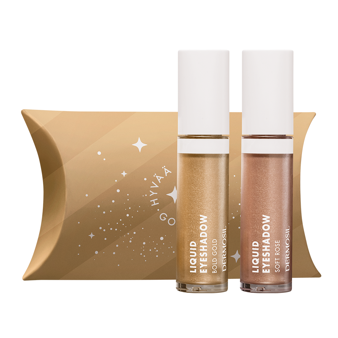 Christmas gift Soft & Bold is a lovely makeup kit with two beautifully shimmering liquid eyeshadows. Liquid Eyeshadow Soft Rose has a sweet cool pink colour. Liquid Eyeshadow Bold Gold is a bolder warm golden colour.