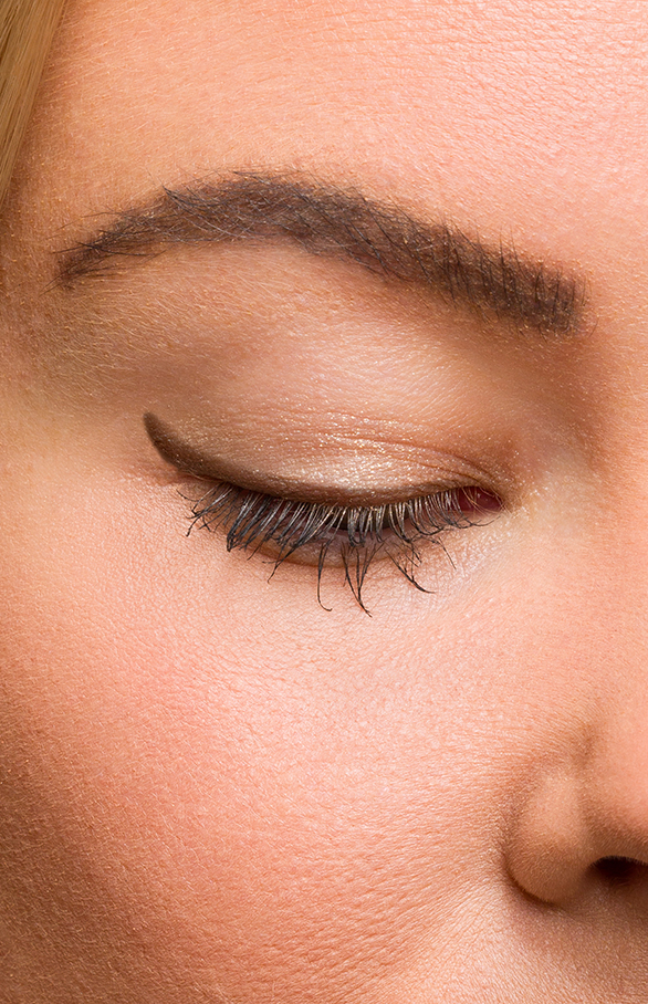 Tip! If you feel that it is difficult to draw an outline, start by first drawing a line from the centre of the lid to the outer corner of the eye and then from the inner corner of the eye to the centre of the lid. Draw the outline as close to the lash line as possible.