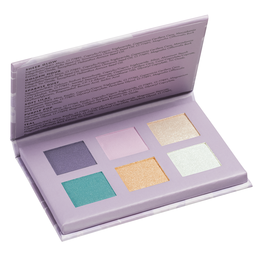 Purple pop: Mica, CI 77742, Kaolin, Caprylic/Capric Triglyceride, CI 77491, CI 77891, Magnesium Stearate, Copernicia Cerifera Cera, Calcium Sodium Borosilicate, CI 77510, Glyceryl Caprylate, Pentylene Glycol, CI 77499, Magnolia Officinalis Bark Extract, Tin Oxide.