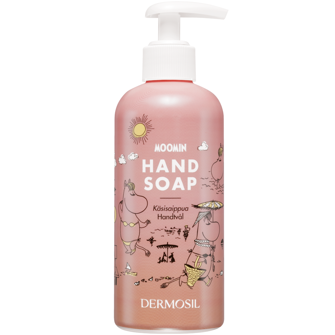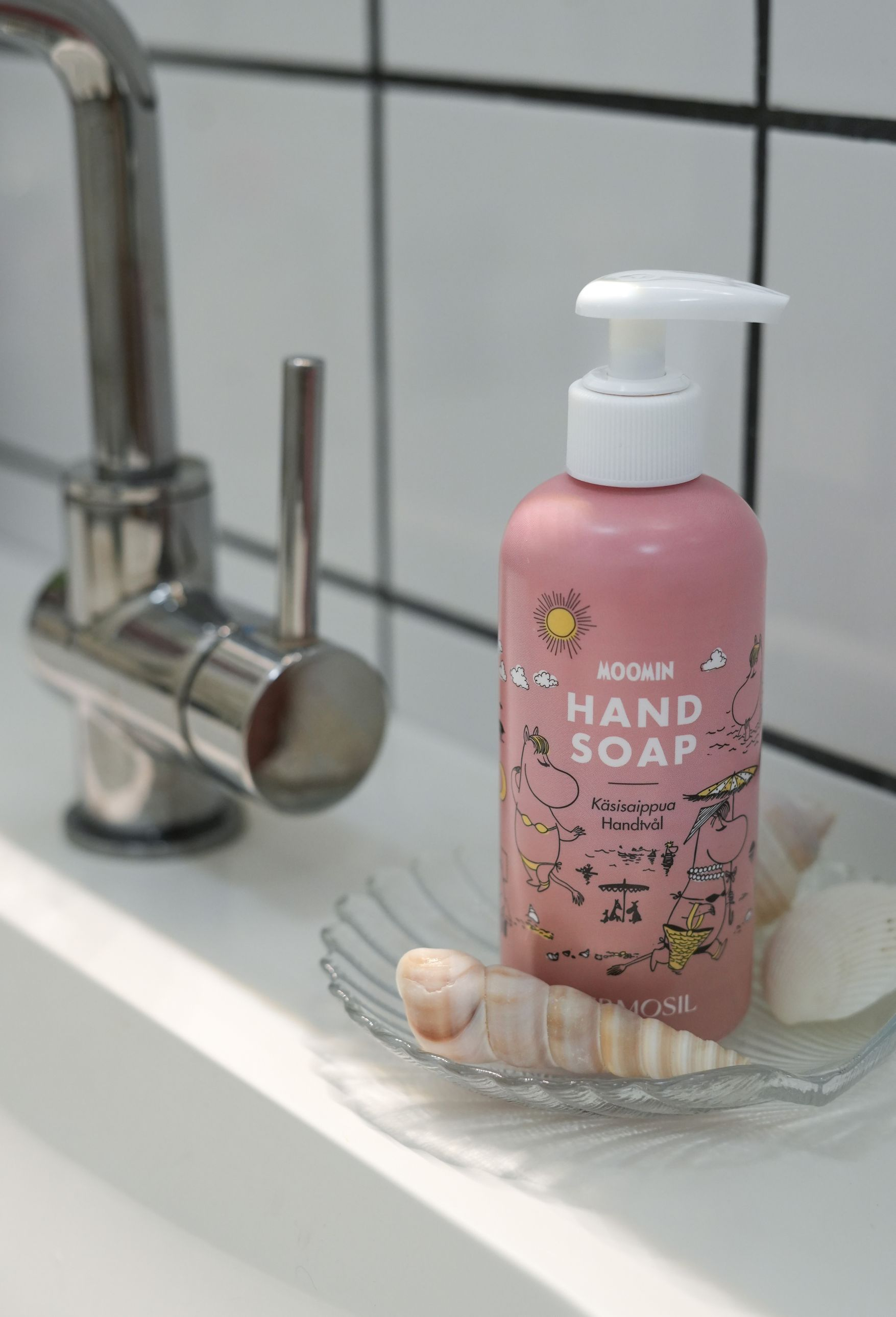 Moomin Hand Soap with a wonderful summer feeling cleanses hands without making skin dry. The hand soap contains soothing and softening almond oil and moisturising glycerine. Oat extract softens and smooths the skin.