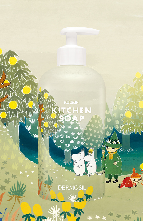 Moomin Kitchen Soap Garden enchants with its fragrance of fresh orange and lemon, and a delightful drawing. You will get your hands nicely clean by washing with the kitchen soap. Proper hand hygiene is extra important when you are handling various kinds of foods at the same time.