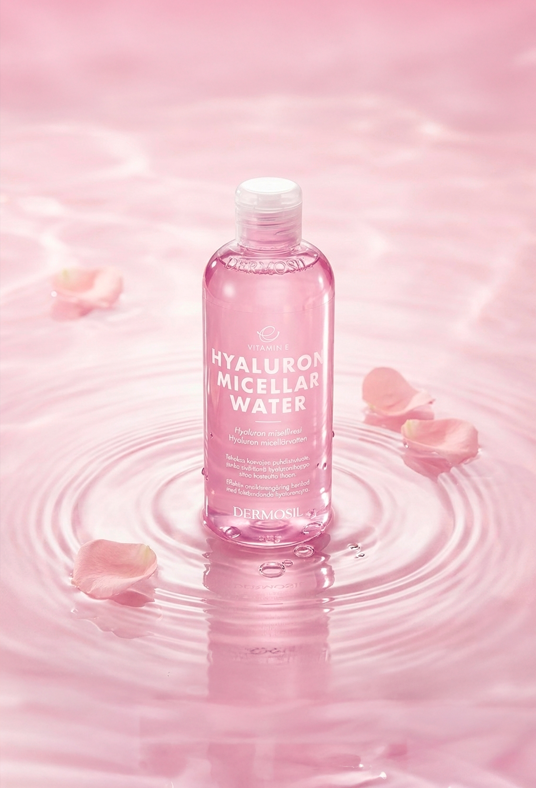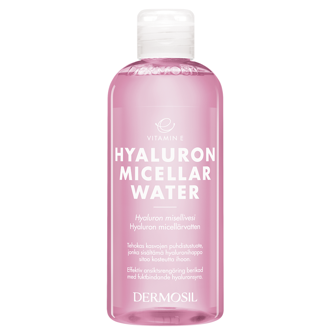 Micellar water contains hyaluronic acid molecules of four different sizes that bind moisture in skin from both inside and outside. Hyaluronic acid is also found naturally in our skin and therefore the components of micellar water provide natural support to skin’s moisture balance and improve skin’s flexibility.