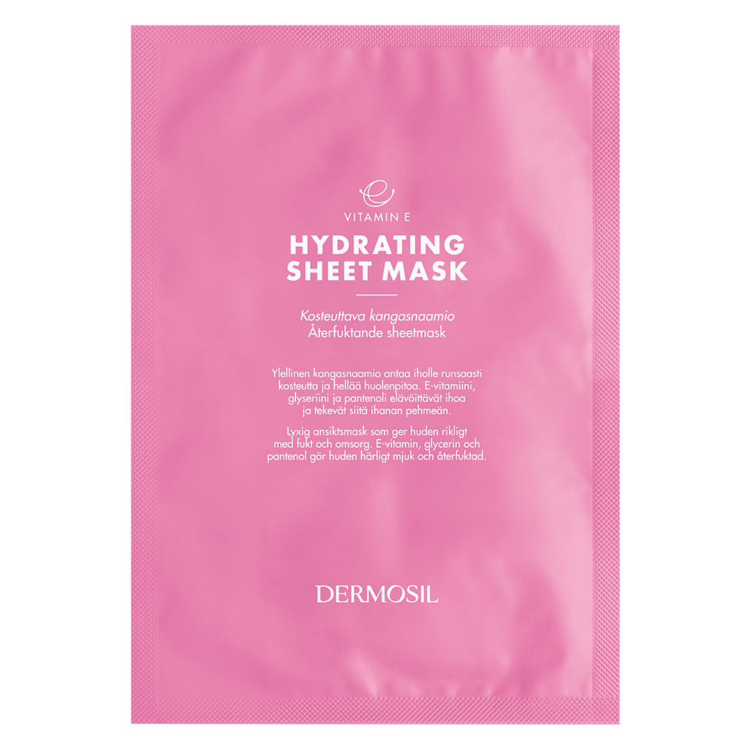 Hydrating Sheet Mask contains vitamin E and hyaluronic acid, and the effectively moisturising components glycerine and panthenol.