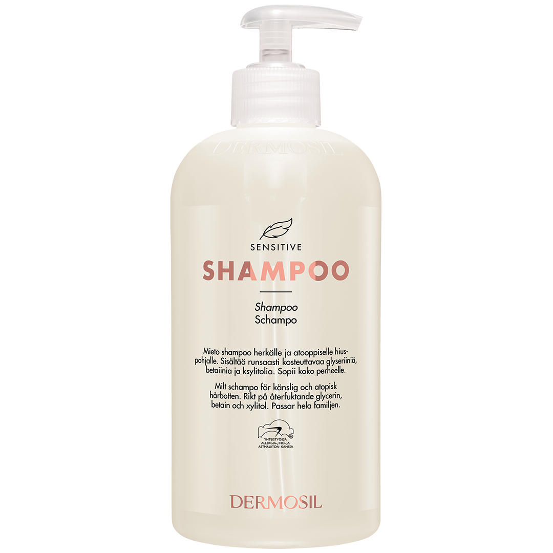 The Finnish Allergy, Skin and Asthma Federation has granted the product the right to use the allergy symbol. The mild shampoo is also a safe choice for children over one year of age. The shampoo meant for sensitive scalp contains no fragrance, colourants or silicones. Therefore it is extremely mild and can be used with atopic skin.