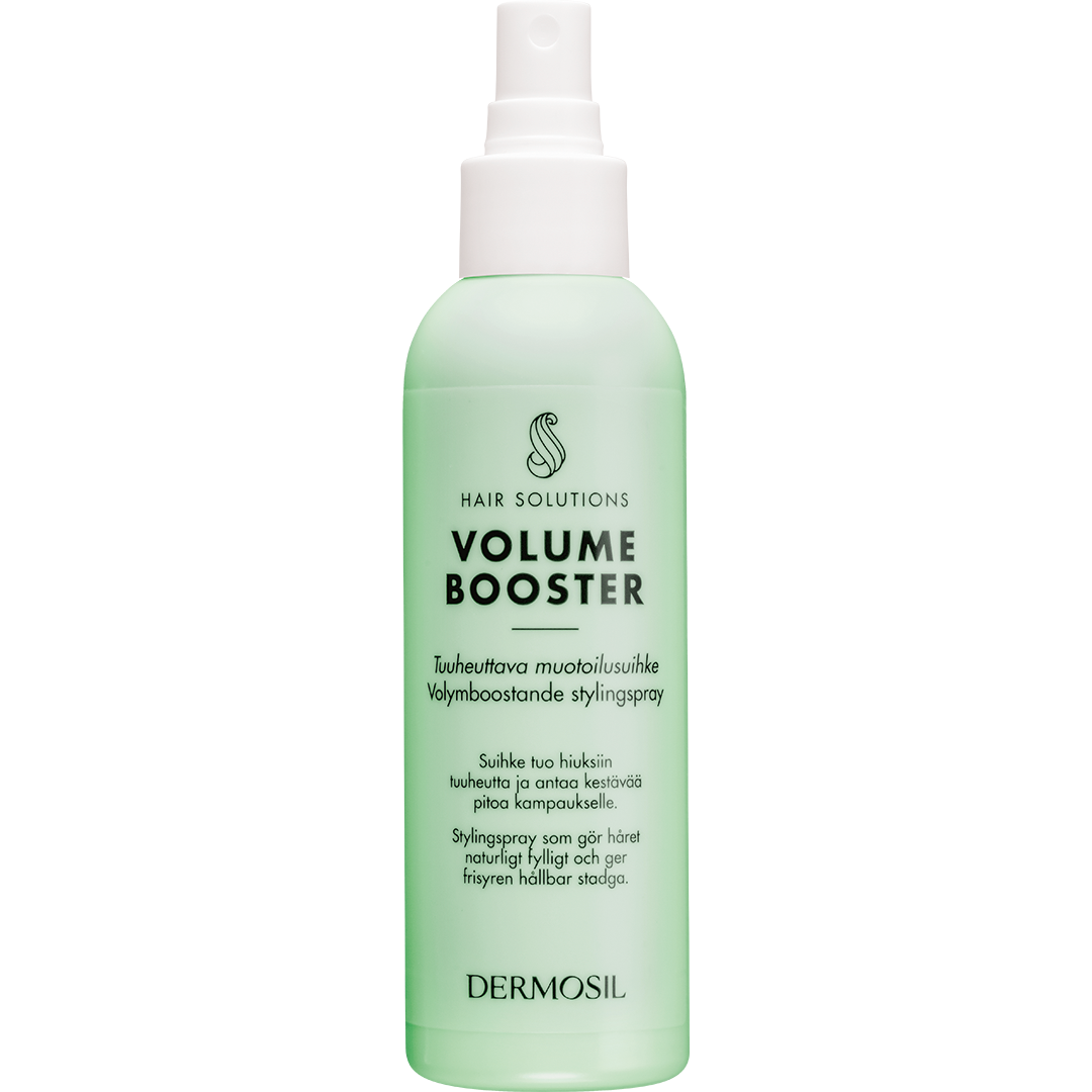 Dermosil Volume Booster gives thin and fine hair more volume. The spray lifts up the hair from the scalp and adds richness and structure to hair.