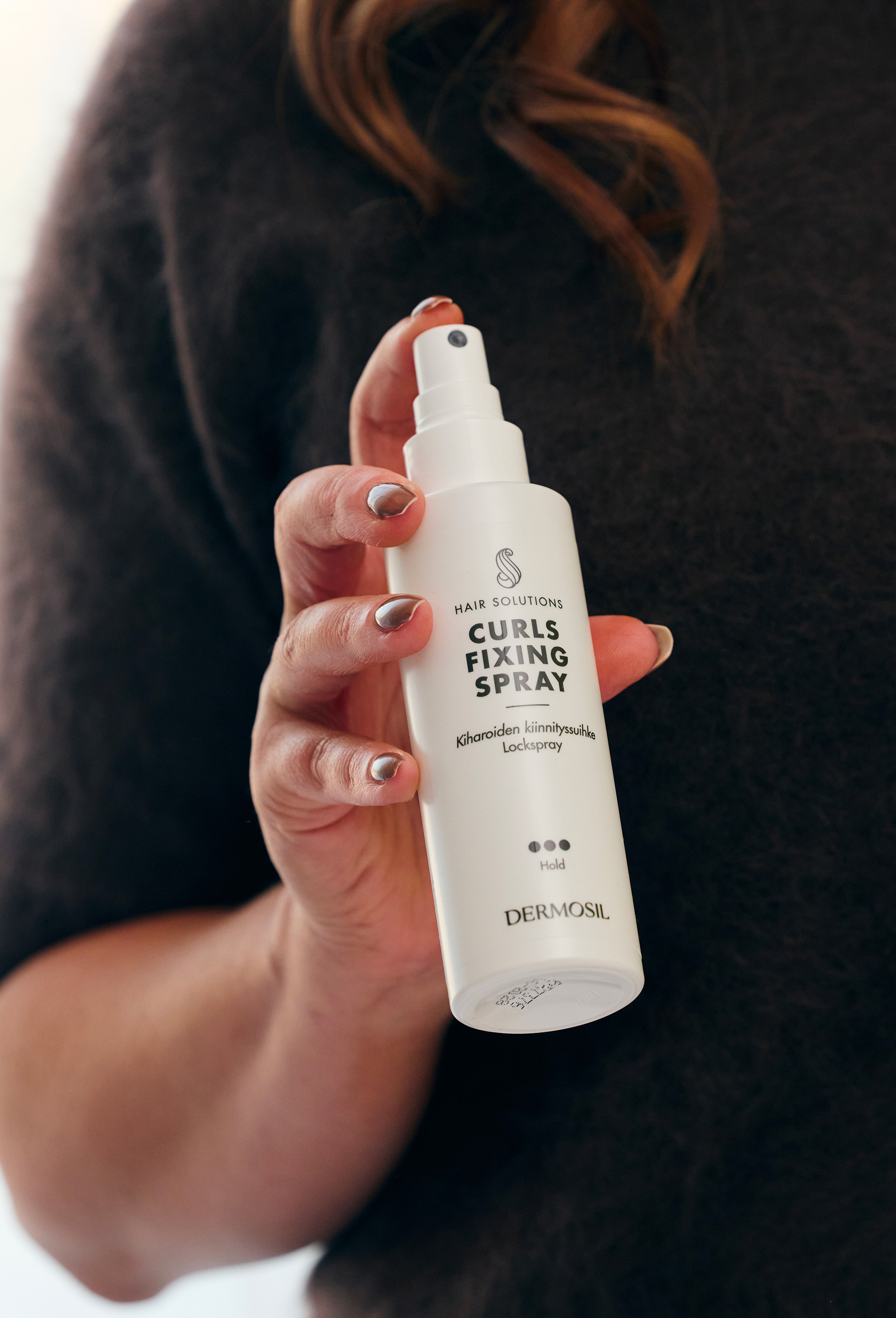 How to make your curls last? This is how you get long-lasting curls: Before curling your hair, apply heat protection and a styling product on your hair. Curl your hair and allow the curls to cool. It is important to let your hair cool down properly. Then spray Curls Fixing Spray on your hair at the distance of about 30 cm and allow it to dry. Run your fingers through your hair.