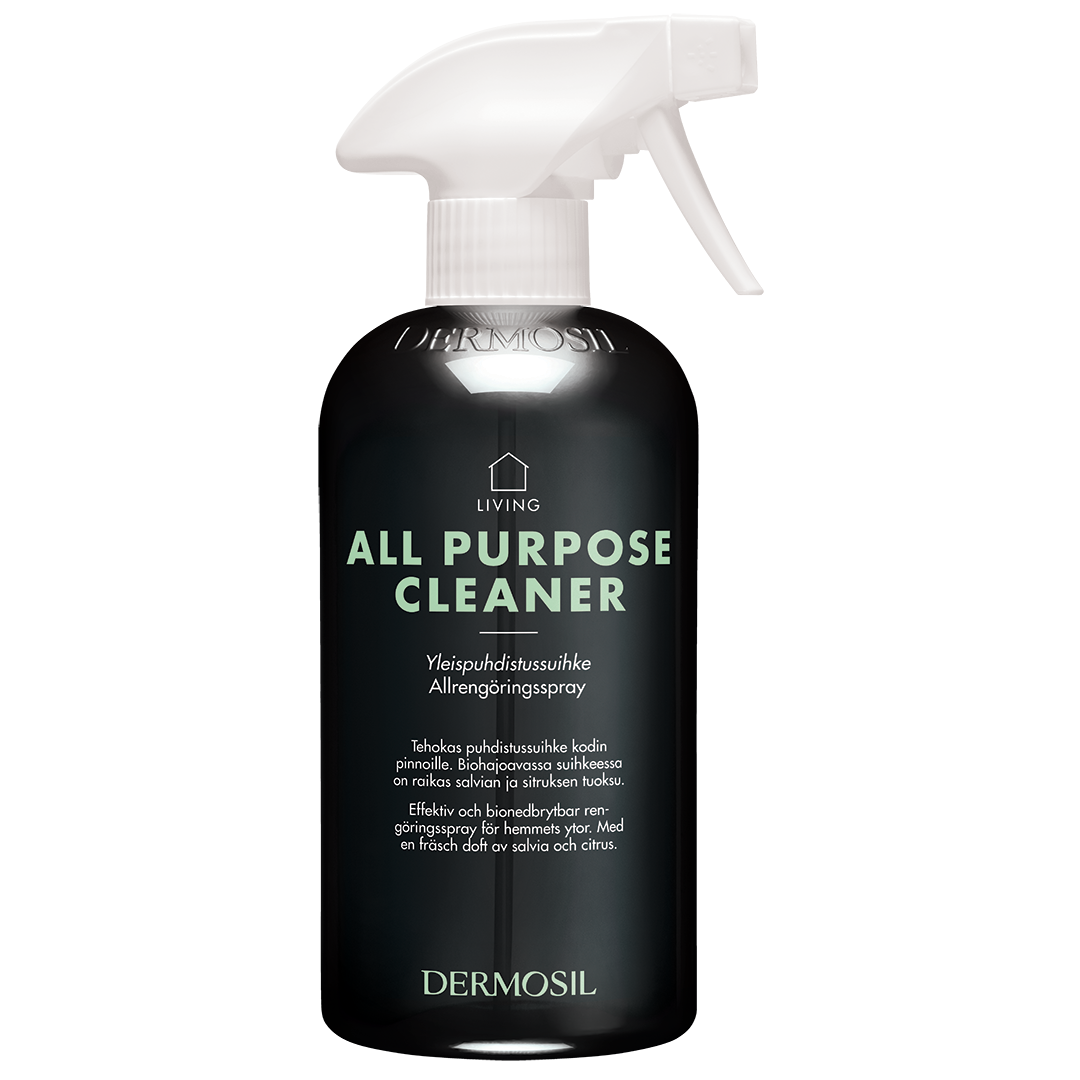Biodegradable cleaning spray for every home. The spray is ready for use and removes efficiently any stubborn and dried dirt and grease stains from surfaces in your home. The cleaning spray has a fresh aroma of sage and citrus. pH value 9-11.