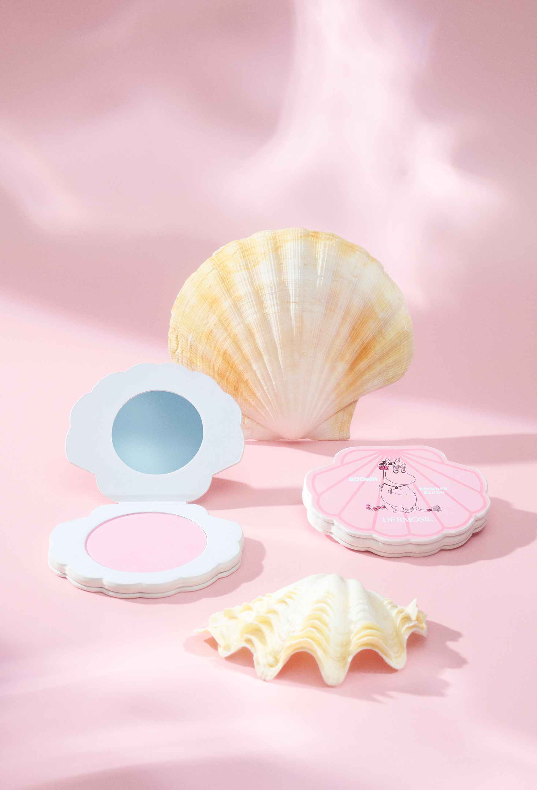 Moomin Powder Blush is packaged in a sweet seashell-shaped cardboard box that makes it a perfect gift for a friend or for yourself.