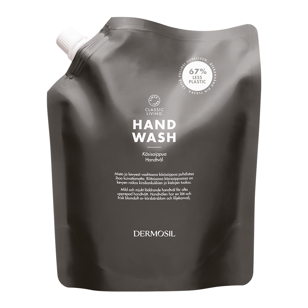 The refills are made from a plastic mix, which means the empty refill bags should be sorted as combustible waste or mixed waste. Refilling is an eco-friendly act – by choosing a refill instead of a bottle you save a significant amount of plastic.
